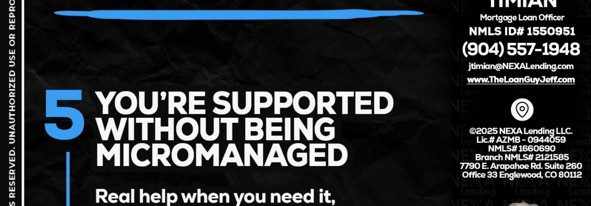 Hi, my name is Jeff Timian. I’m a Loan Officer with NEXA Lending LLC., offering personalized mortgage solutions, fast customized quotes, great rates and service with integrity.