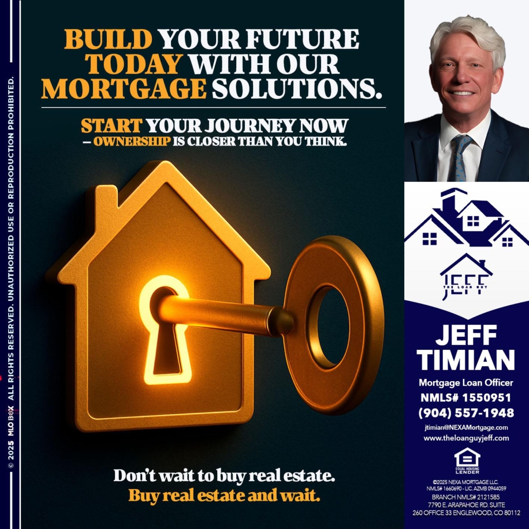 Hi, my name is Jeff Timian. I’m a Loan Officer with NEXA Mortgage LLC., offering personalized mortgage solutions, fast customized quotes, great rates and service with integrity.