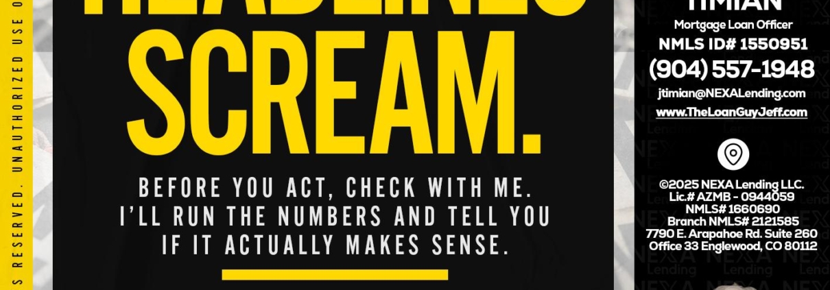 Hi, my name is Jeff Timian. I’m a Loan Officer with NEXA Lending LLC., offering personalized mortgage solutions, fast customized quotes, great rates and service with integrity.