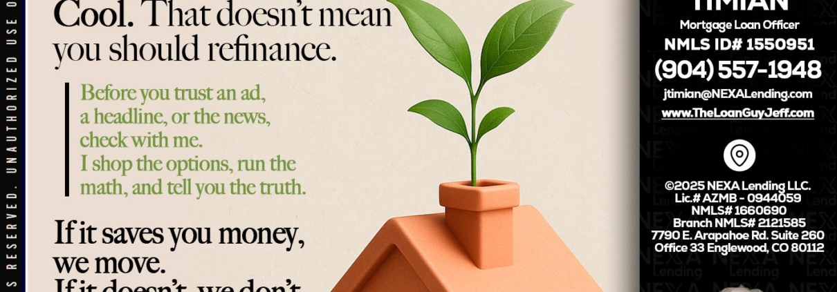 Hi, my name is Jeff Timian. I’m a Loan Officer with NEXA Lending LLC., offering personalized mortgage solutions, fast customized quotes, great rates and service with integrity.