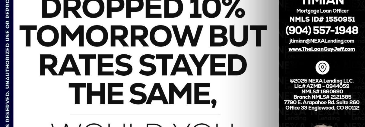 Hi, my name is Jeff Timian. I’m a Loan Officer with NEXA Mortgage LLC., offering personalized mortgage solutions, fast customized quotes, great rates and service with integrity.