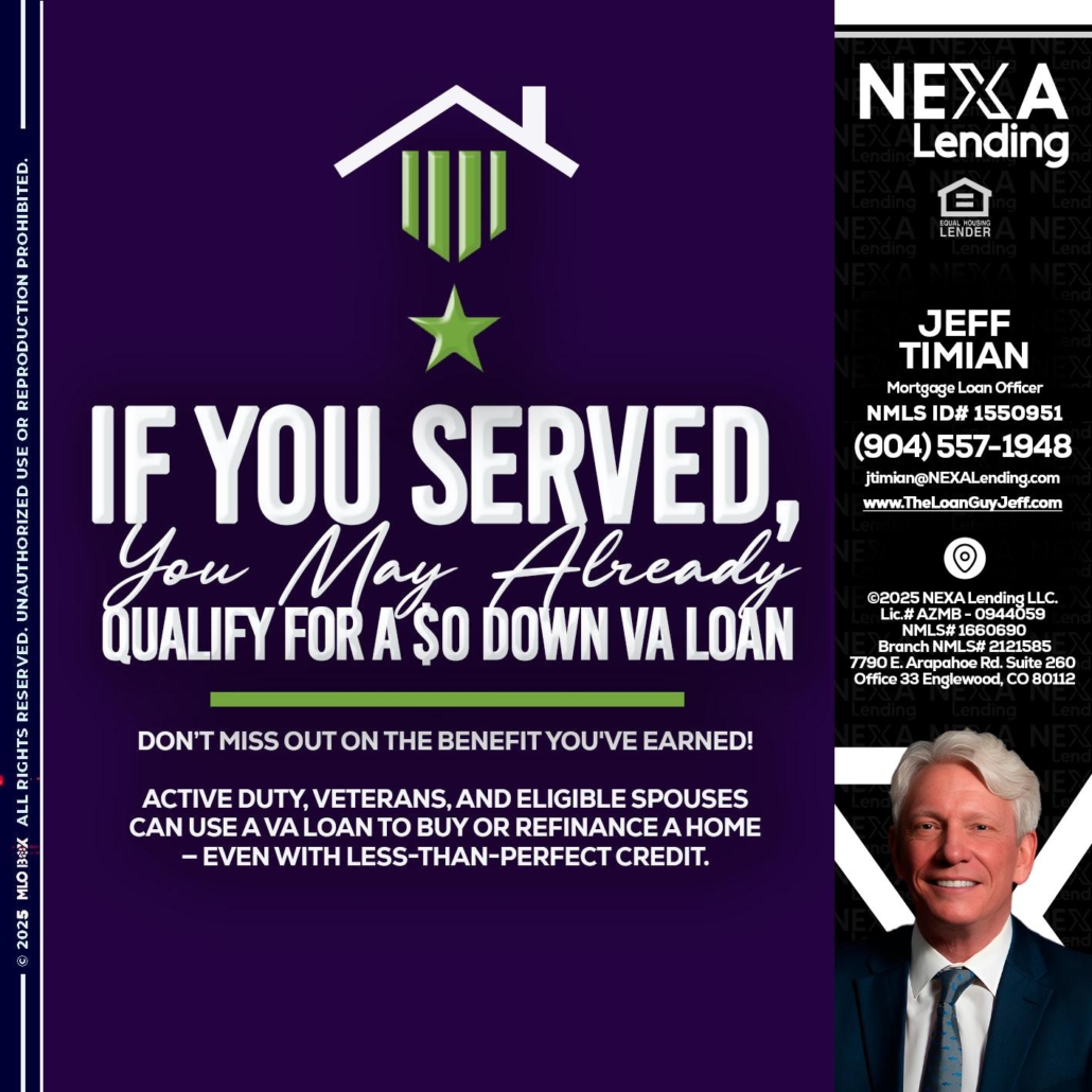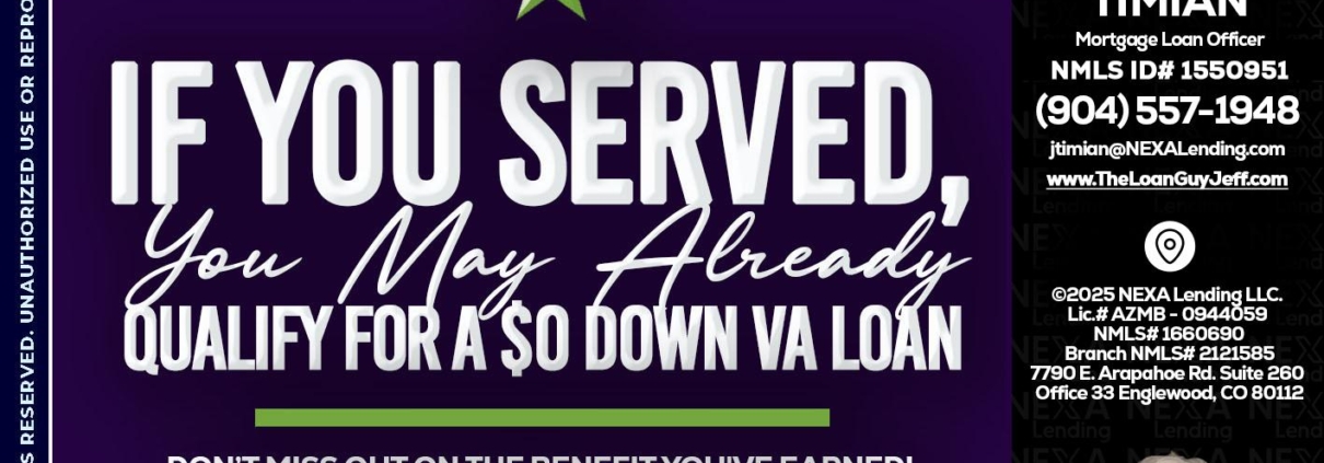 IF YOU SERVED - Jeff Timian -Mortgage Loan OfficerHi, my name is Jeff Timian. I’m a Loan Officer with NEXA Mortgage LLC., offering personalized mortgage solutions, fast customized quotes, great rates and service with integrity.