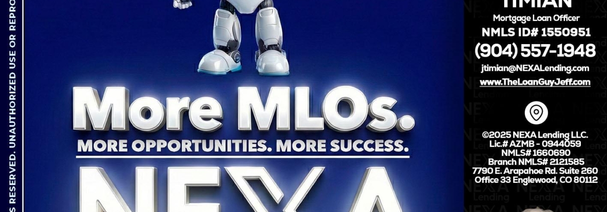 Hi, my name is Jeff Timian. I’m a Loan Officer with NEXA Lending LLC., offering personalized mortgage solutions, fast customized quotes, great rates and service with integrity.