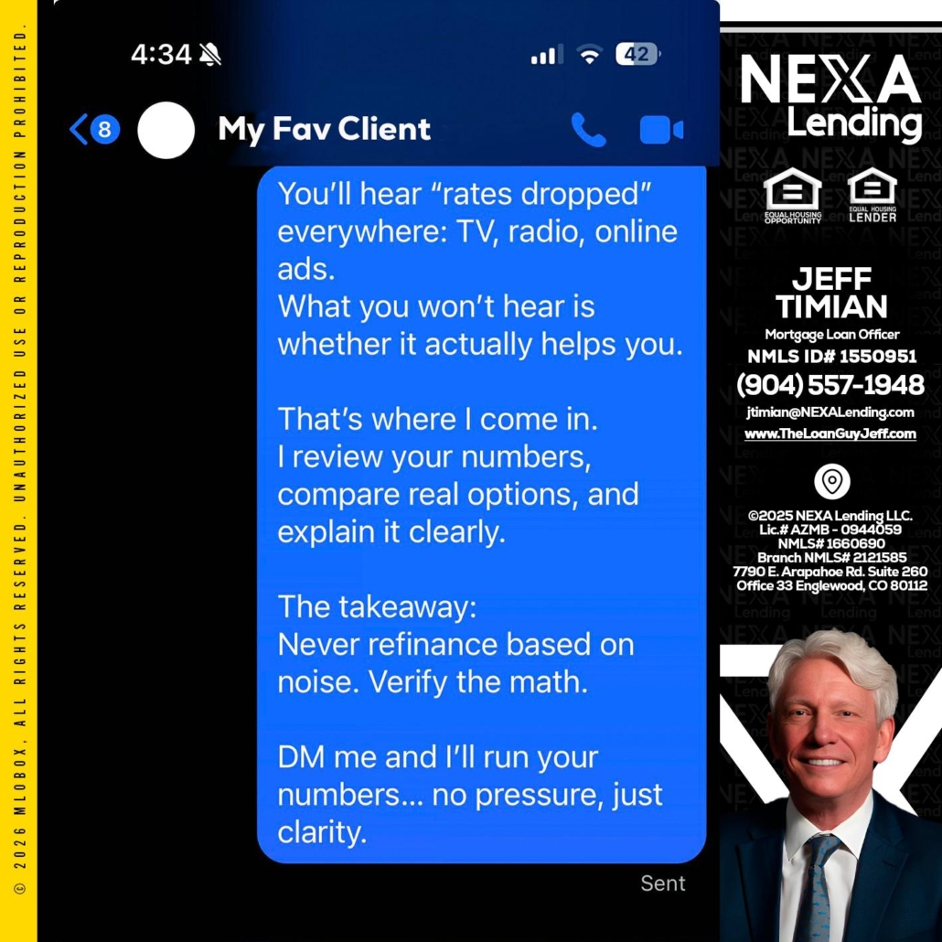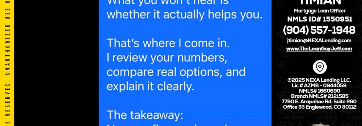Hi, my name is Jeff Timian. I’m a Loan Officer with NEXA Lending LLC., offering personalized mortgage solutions, fast customized quotes, great rates and service with integrity.