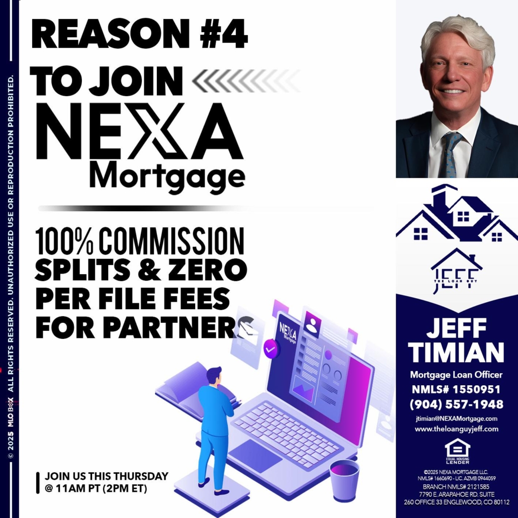 Hi, my name is Jeff Timian. I’m a Loan Officer with NEXA Mortgage LLC., offering personalized mortgage solutions, fast customized quotes, great rates and service with integrity.
