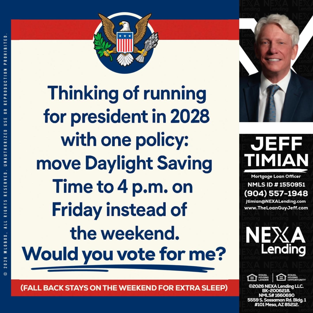 Hi, my name is Jeff Timian. I’m a Loan Officer with NEXA Lending LLC., offering personalized mortgage solutions, fast customized quotes, great rates and service with integrity.