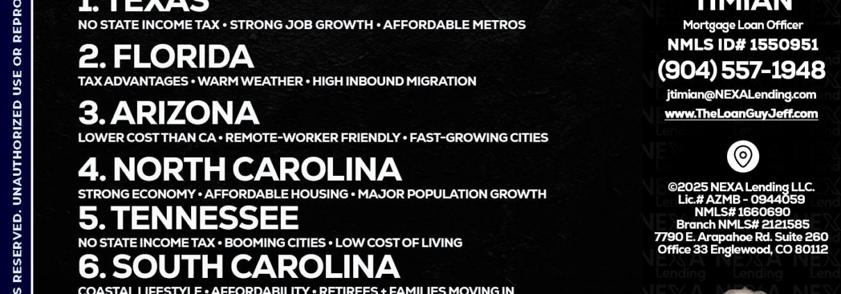 top 10 - Jeff Timian -Mortgage Loan OfficerHi, my name is Jeff Timian. I’m a Loan Officer with NEXA Lending LLC., offering personalized mortgage solutions, fast customized quotes, great rates and service with integrity.